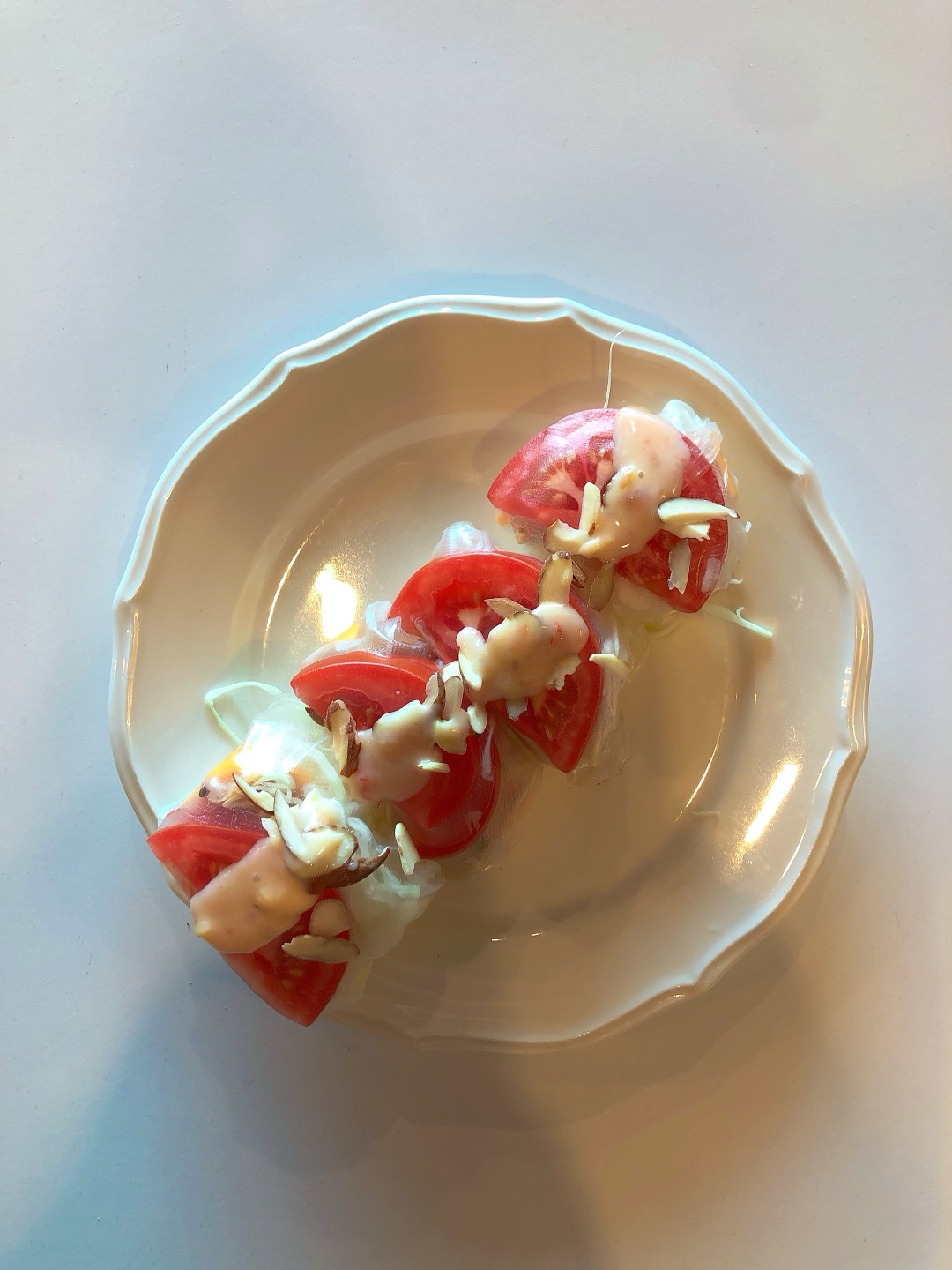 말 그대로 토마토와 채소만으로 만든 월남쌈이에요.