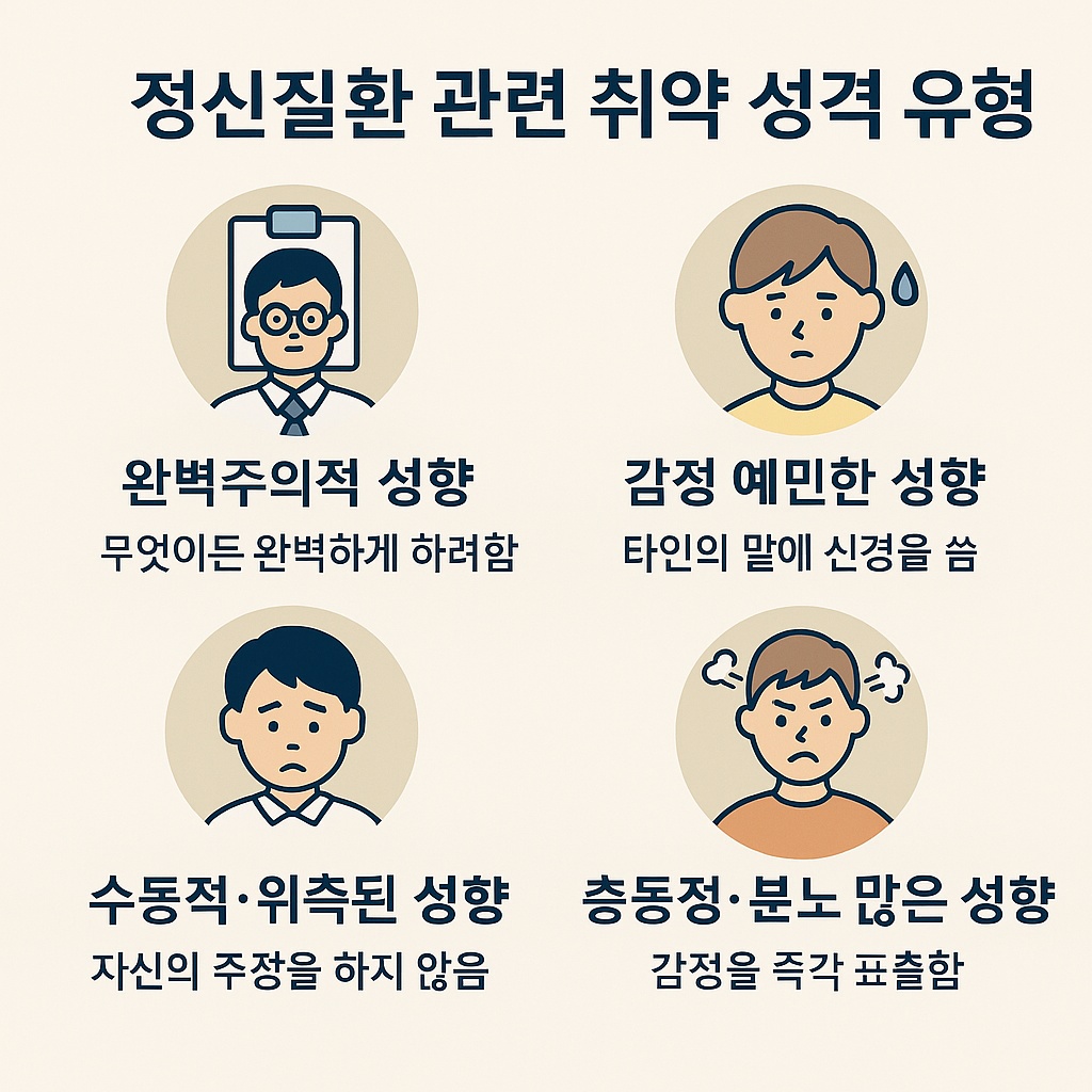 다음은 심리적으로 취약할 수 있는 성향들을 성격별로 정리하고,